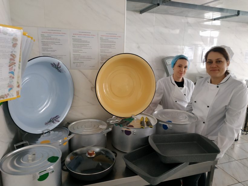 Щодня над харчуванням дітей працюють досвідчені кухарі — Інна Володимирівна та Ольга Василівна. Навіть у складні часи вони з турботою та любов’ю готують для малечі смачні й корисні страви. Завдяки новому якісному посуду робота на кухні стала зручнішою, а сам процес приготування — ефективнішим.
